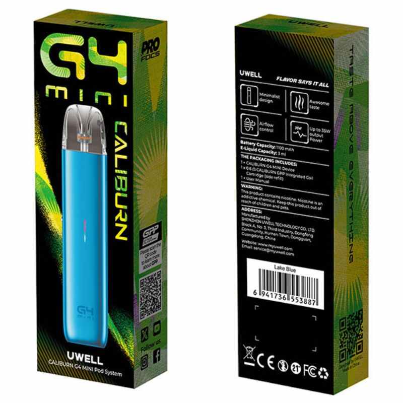 Uwell’s Caliburn G4 Mini pod kit can be partnered with any pod from their amazing Caliburn G3 pod cartridge series, providing vaping flexibility with either nic salts or freebase e-liquids.
